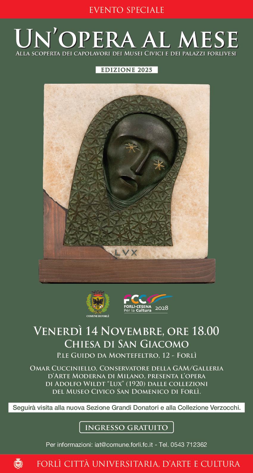 Omar Cucciniello, conservatore della GAM/Galleria d’Arte Moderna di Milano, presenta l’opera di Adolfo Wildt “Lux” (1920), dalle Collezioni del Museo Civico San Domenico di Forlì.